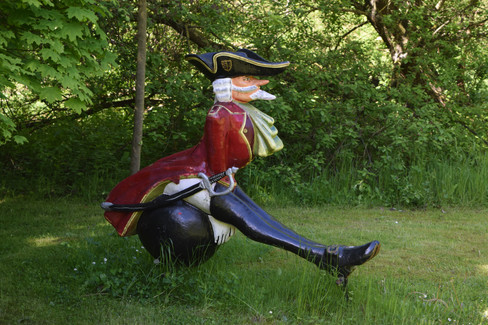 On our way from Hehlen Castle to Bevern Castle, we made a short stop in Bodenwerder to see a few statues of Statius von Münchhausen. Münchhausen lived from 1555 to 1633 and he is considered one of the most important commissioners of buildings in the style of the Weser Renaissance. There are a number of rather bizarre legends around Münchhausen, including that he rode a cannonball and unknowingly rod with only the front half of his horse to a watering place.